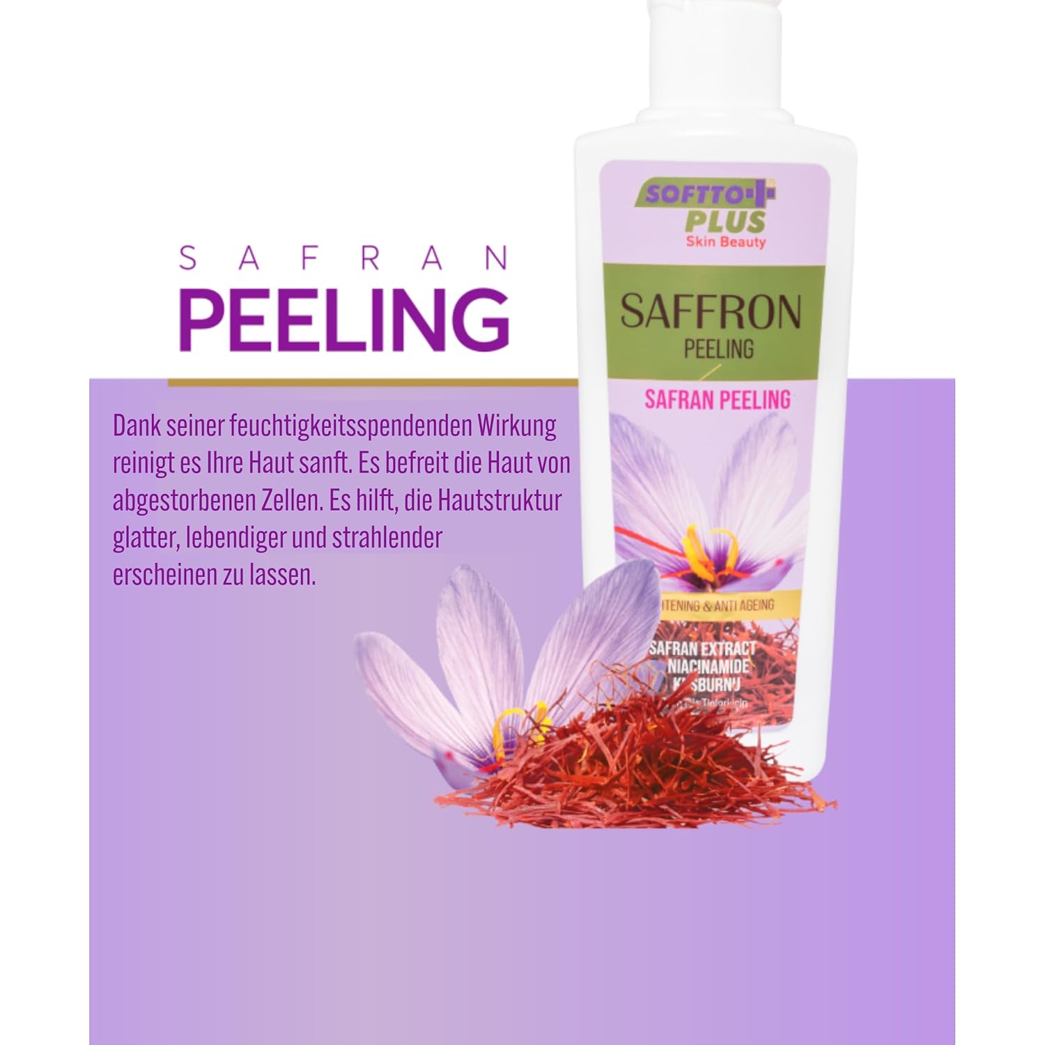 Das Softto+Plus Safran Peeling vereint sanfte Reinigung mit intensiver Pflege für eine rundum strahlende Haut. Angereichert mit wertvollem Safran-Extrakt, entfernt es schonend abgestorbene Hautzellen und Unreinheiten, ohne die Haut auszutrocknen. Die spezielle Formulierung hilft, die Hautstruktur zu verfeinern und verleiht ihr ein glatteres, strahlenderes Aussehen.