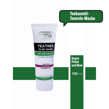 Die Softto+Plus Tea Tree Clay Mask Anti-Acne & Blemish wurde speziell für Haut entwickelt, die zu Akne und Unreinheiten neigt. Ihre cremige Textur ermöglicht ein einfaches Auftragen und eine gleichmäßige Verteilung auf der Haut. Die Maske enthält Teebaumöl, bekannt für seine antibakteriellen und entzündungshemmenden Eigenschaften, und Tonerde, die überschüssiges Öl und Unreinheiten sanft absorbiert und die Haut tiefenwirksam reinigt. Durch die Anwendung werden Pickel, Akne und Hautunreinheiten sichtbar reduziert, während die Haut gleichzeitig geklärt und mattiert wird. Die Maske hilft, die Haut zu beruhigen und zu pflegen, ohne sie auszutrocknen, und sorgt für ein frisches, gesundes Hautbild. Die Maske ist einfach anzuwenden: Sie wird dünn auf die gereinigte Gesichtspartie aufgetragen, dabei werden Augen- und Lippenpartie ausgespart. Nach einer Einwirkzeit von 10-15 Minuten lässt sie sich mit warmem Wasser leicht abspülen. Bei regelmäßiger Anwendung (ein- bis zweimal wöchentlich) trägt sie dazu bei, das Hautbild langfristig zu verbessern und Unreinheiten vorzubeugen. Die praktische Tubenverpackung garantiert eine hygienische Anwendung und ermöglicht den einfachen Transport der Maske, ideal für die Anwendung zu Hause oder unterwegs.