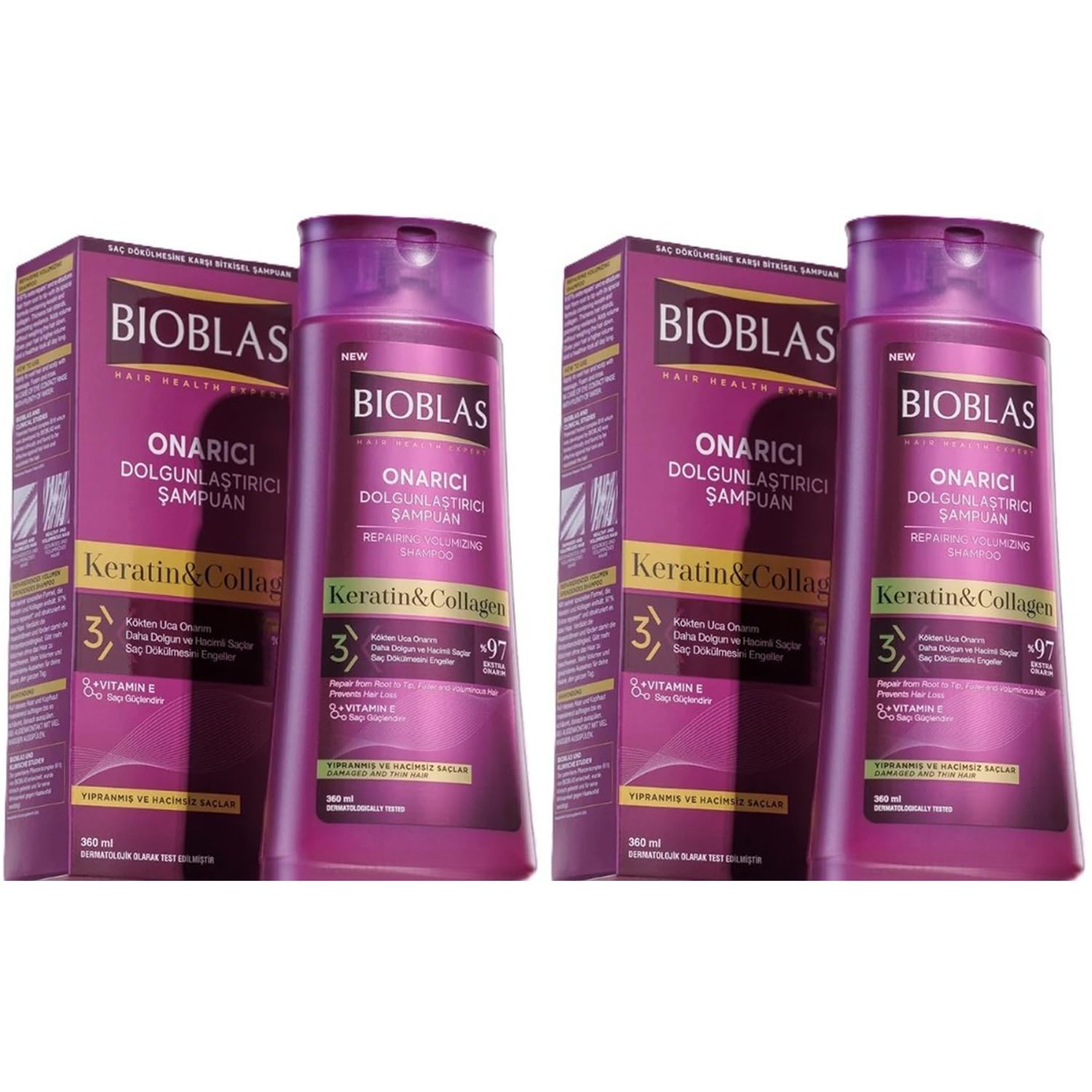 Bioblas Repairing Volumizing Shampoo with keratin and collagen was specially developed for fine, damaged hair prone to hair loss. The advanced formula combines two proven hair-building ingredients—keratin, which specifically repairs and strengthens damaged hair fibers, and collagen, which thickens the hair structure and gives hair new elasticity and bounce. The result: noticeably thicker, stronger hair – without weighing it down.