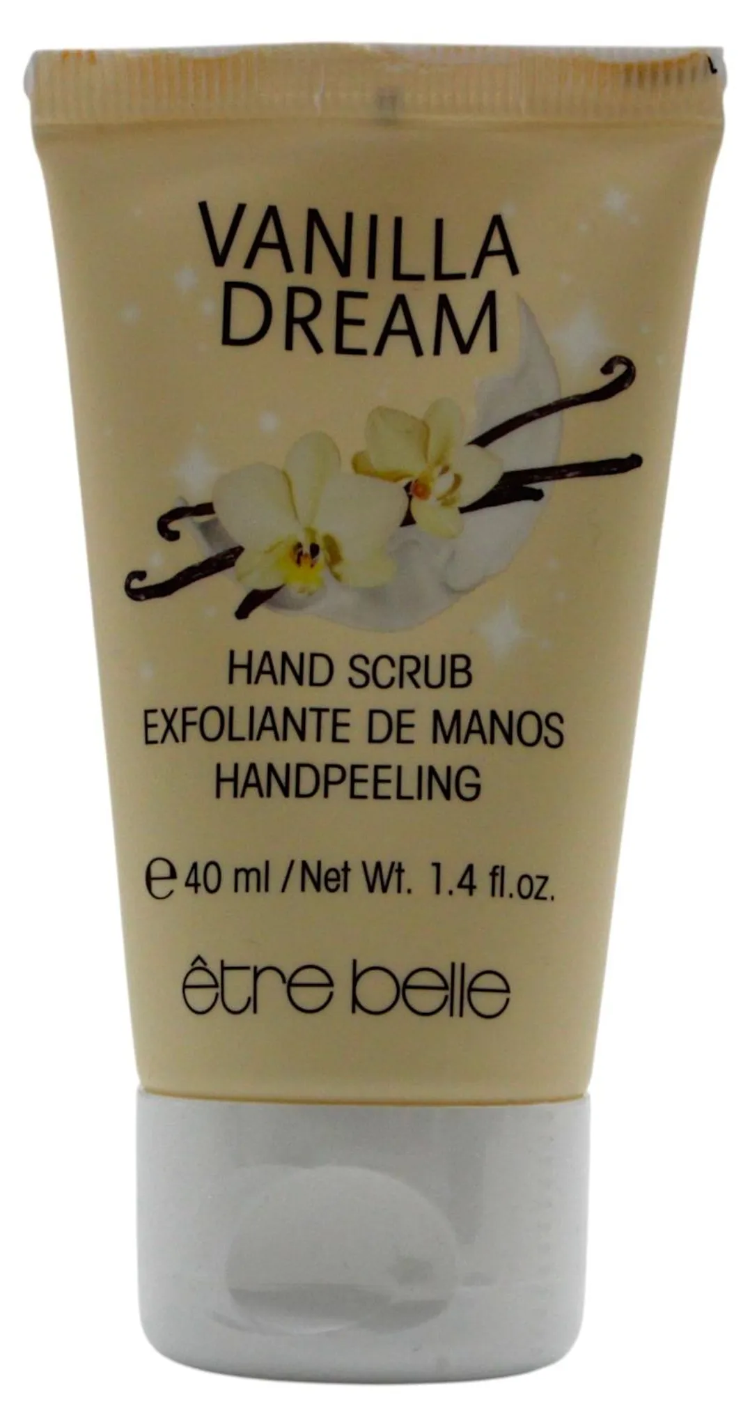 The Etre Belle Vanilla Dream Hand Scrub (40 ml) was specially developed to gently exfoliate dry and rough hands while providing intensive care. The combination of natural exfoliating particles and nourishing oils ensures thorough cleansing and leaves the skin feeling noticeably smoother.