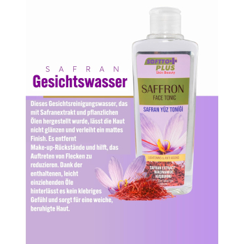 The Softto+Plus Safron Face Tonic is an innovative facial cleansing tonic that has been specially developed to thoroughly cleanse the skin, improve the appearance of imperfections and provide a radiantly fresh complexion. The special combination of saffron extract and herbal extracts not only helps to cleanse the skin, but also contributes to the reduction of skin spots and an even skin texture. The toner is particularly ideal for skin types that are prone to shine, as it leaves a matte finish and keeps the complexion looking fresh all day long. Unlike many conventional facial cleansing solutions that can dry out the skin, Softto+Plus Safron Face Tonic provides a gentle, nourishing effect. The easily absorbed oils ensure that the product penetrates the skin quickly without leaving an unpleasant greasy or sticky feeling. In addition, the toner helps to minimize the appearance of skin spots and irregularities so that the skin appears more even and radiant. The soothing effect ensures soft, nourished skin that not only feels clean, but also refreshed and rejuvenated. The saffron it contains has antioxidant properties that help to counteract the signs of ageing, while the herbal extracts provide a soothing and nourishing effect. Let yourself be pampered by the gentle power of nature and experience how your complexion naturally glows - with Softto+Plus Safron Face Tonic, your reliable companion for even, refreshed skin.